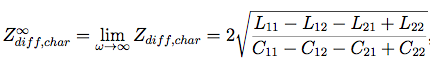 - Symmetric broad-side coupled dual striplines. If this is intended to be a differential pair, the differential- and common-mode impedances can be evaluated by